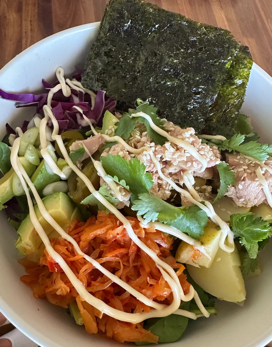 - Plate all ingredients together , garnish with coriander, and enjoy!